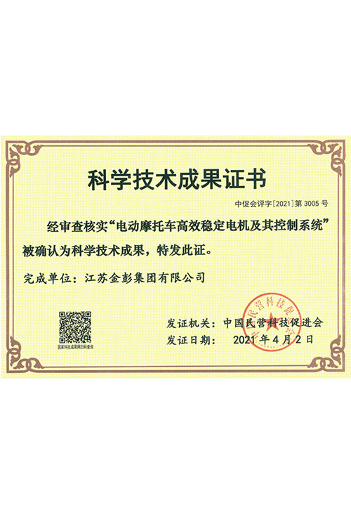 金動(dòng)力系統(tǒng)是金彭集團(tuán)自主研發(fā)的集”電機(jī)、控制器、減(差)速器”一套機(jī)電一體化技術(shù),具有硬件配置高、輸出動(dòng)力大、承載能力更強(qiáng)等諸多優(yōu)點(diǎn),已申請(qǐng)五項(xiàng)國(guó)家專利,與普通的動(dòng)力系統(tǒng)相比,承載能力高出50%以上,能夠?qū)崿F(xiàn)”同一路段,多拉一半”。該技術(shù)已通過(guò)國(guó)家摩托車質(zhì)量監(jiān)督檢測(cè)中心檢測(cè)認(rèn)可,徐州公證處公證,并在2021年4月2日中國(guó)民營(yíng)科技促進(jìn)會(huì)組織的科技成果鑒定會(huì)上被一致認(rèn)定為”國(guó)際先進(jìn)”,是電動(dòng)三輪車行業(yè)首項(xiàng)”國(guó)際先進(jìn)”技術(shù)。