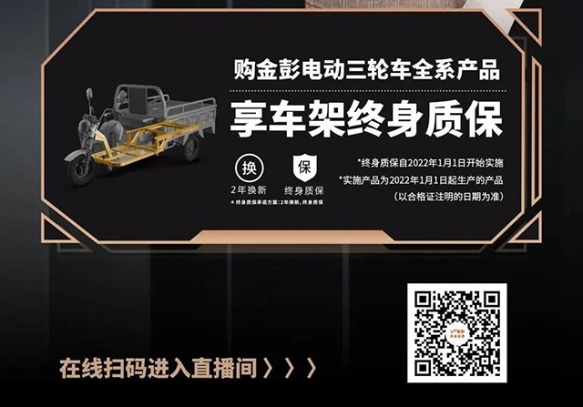重磅官宣 | 金彭承諾電動(dòng)三輪車(chē)全系產(chǎn)品車(chē)架終身質(zhì)保